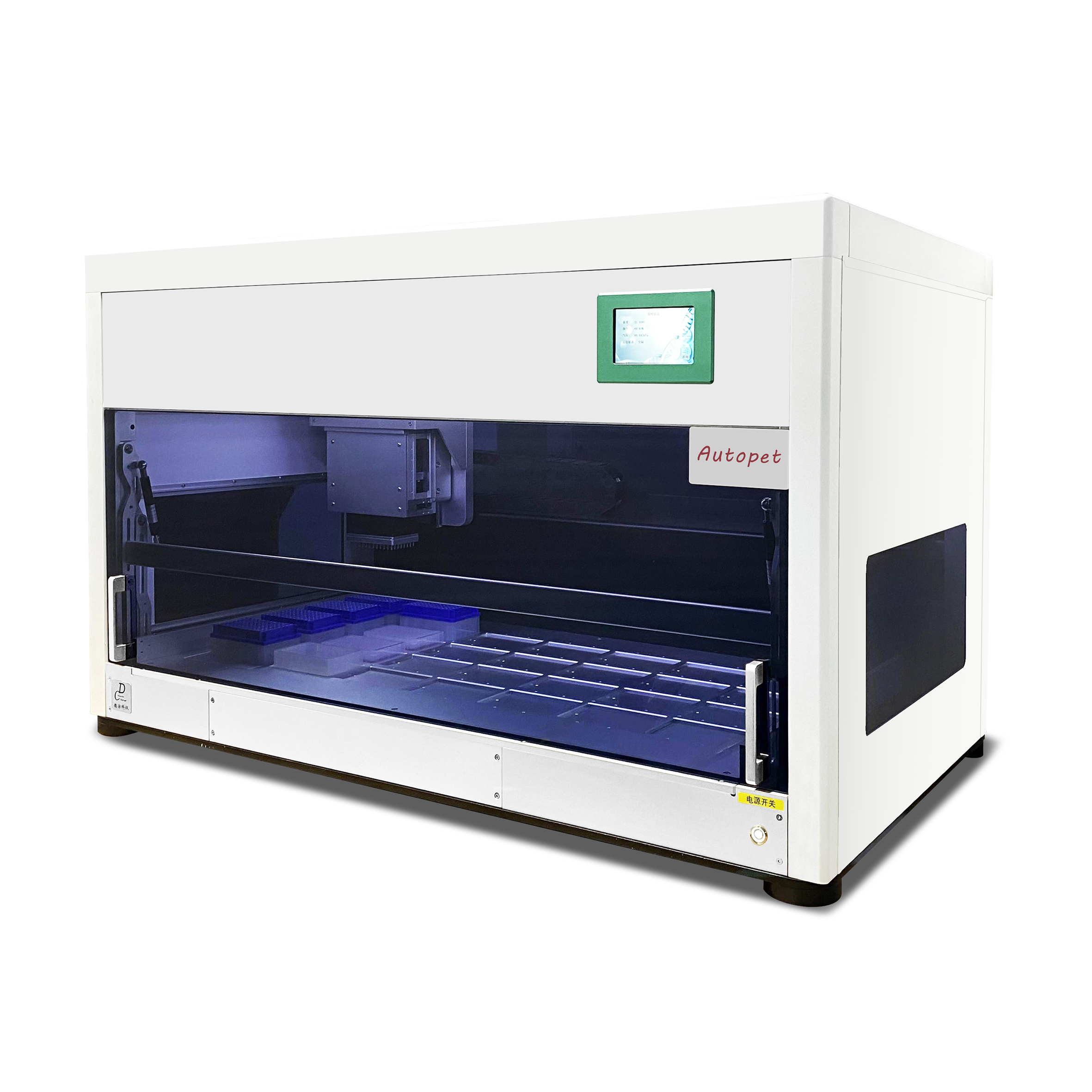 佛山市德淙科学仪器有限公司生产的Autopet-96型全自动移液工作站可实现全流程建库,磁珠法核算提取和全自动大批量分液移液。该机型具有以下的特点: